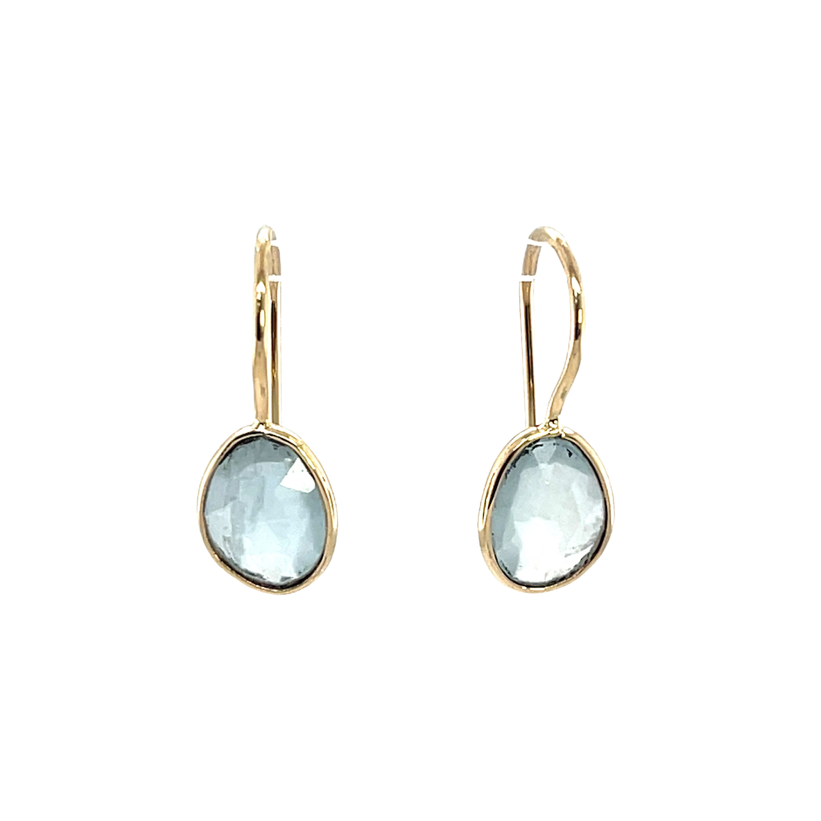oorhangers 14kt goud met roos geslepen steen van 6x8mm